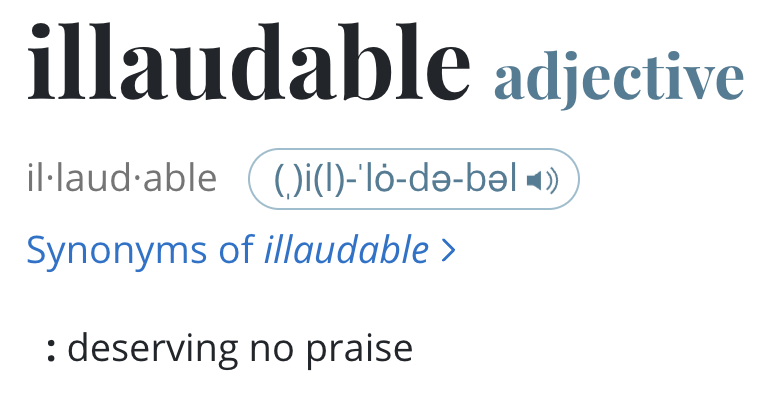 Here’s a fun word for you: illaudable.
